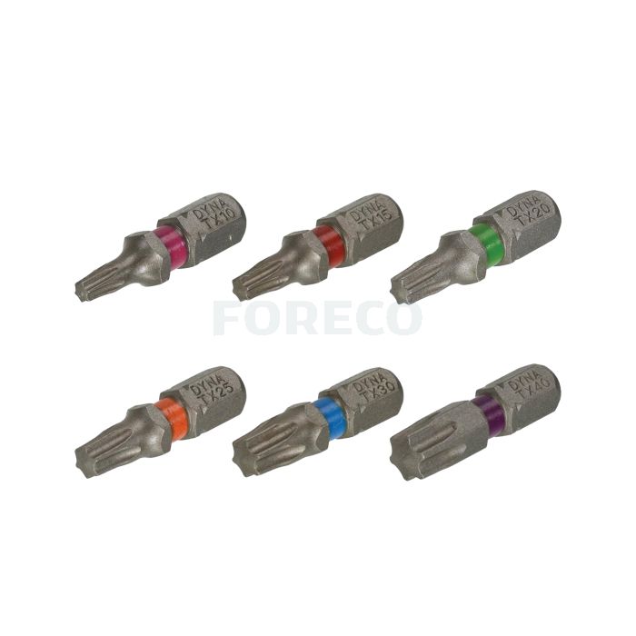 De schroefbit is 50mm lang en ze zijn gemaakt van S2 gelegeerd gereedschapsstaal. Ze zijn licht conisch gevormd voor een stabiele bit-fit en meer grip tijdens het inschroeven. Handig voor de bouw. De bitjes worden geleverd in een makkelijk afsluitbare bewaarblister van 5 stuks. De schroefbitjes zijn er in de maten tX10 - TX40. Elke afmeting van de TX schroef heeft zijn eigen kleur zo kun je zo makkelijk van elkaar onderscheiden als je de bitjes wil verwisselen, de kleur van de bitjes is ook terug te vinden op het doosje.